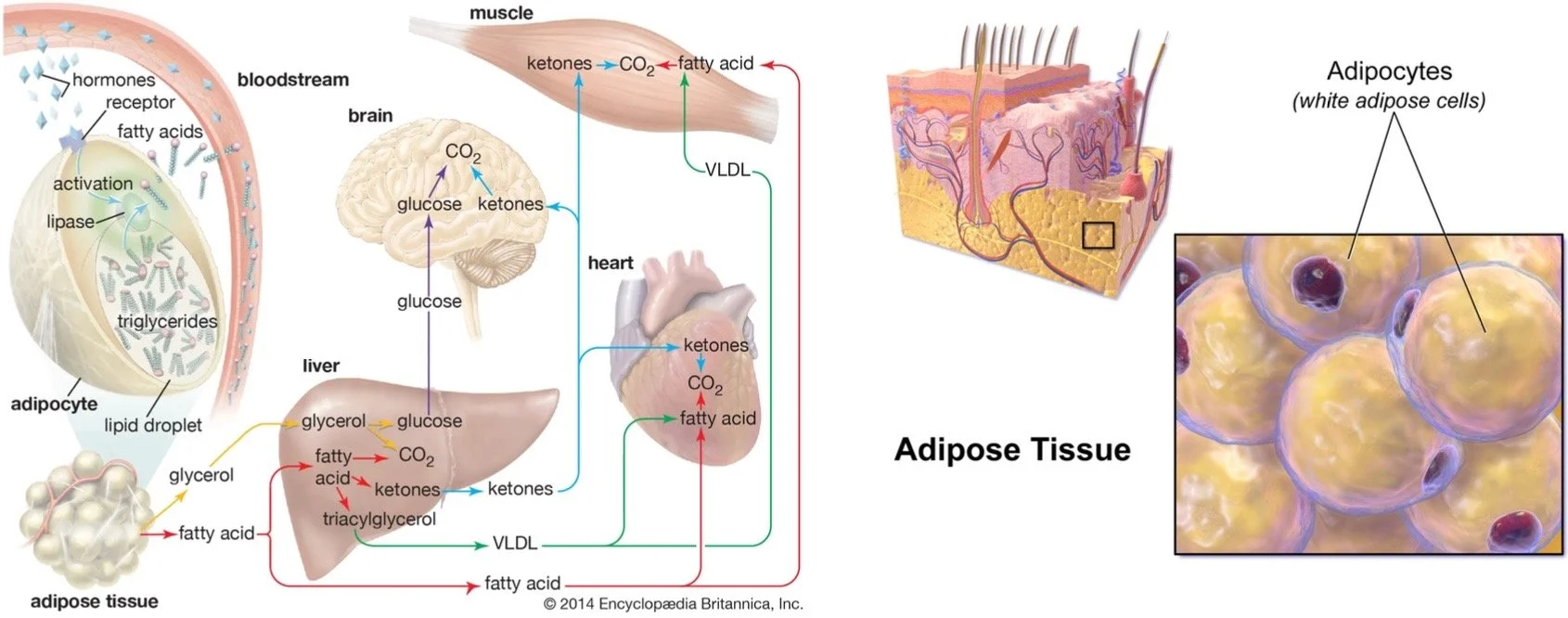 During an intense workout, our bodies initiate a phenomenon called lipolysis, where adipocytes lyse, or break, triglycerides and send them into the bloodstream for our muscles. Because our muscles perform cellular respiration, the process of converting energy stores into usable energy, they can use these triglycerides to produce a molecule called adenosine triphosphate, ATP for short.