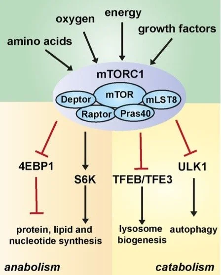 Protein synthesis involves the creation of new proteins within the muscle fibers, which contribute to their overall growth and strength. The primary driver of muscle protein synthesis is a molecule called mTOR (mammalian target of rapamycin), and the point of this molecule is to determine if the conditions to continue protein synthesis are correct.