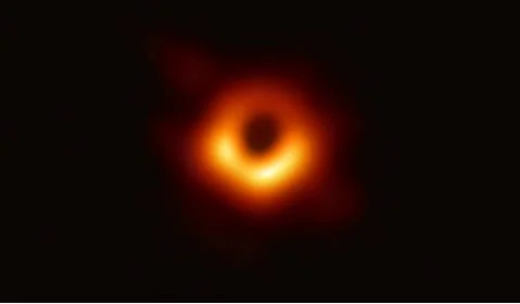 This is NASA’s most recent picture of the black hole Messier 87, and you will notice that the black hole isn’t invisible. But how is that possible if light can’t escape it? This orange ring around it is caused by the event horizon. Past the event horizon the speed required to escape the black hole is greater than the speed of light. The orange ring is light that is just far enough from the black hole so that it doesn’t get sucked in, and thus, we see an orange ring in the picture. This orange ring is called the photon ring. Black holes also have a ring of dust and debris beyond the photon ring, and these pieces of matter travel at incredibly high speeds.